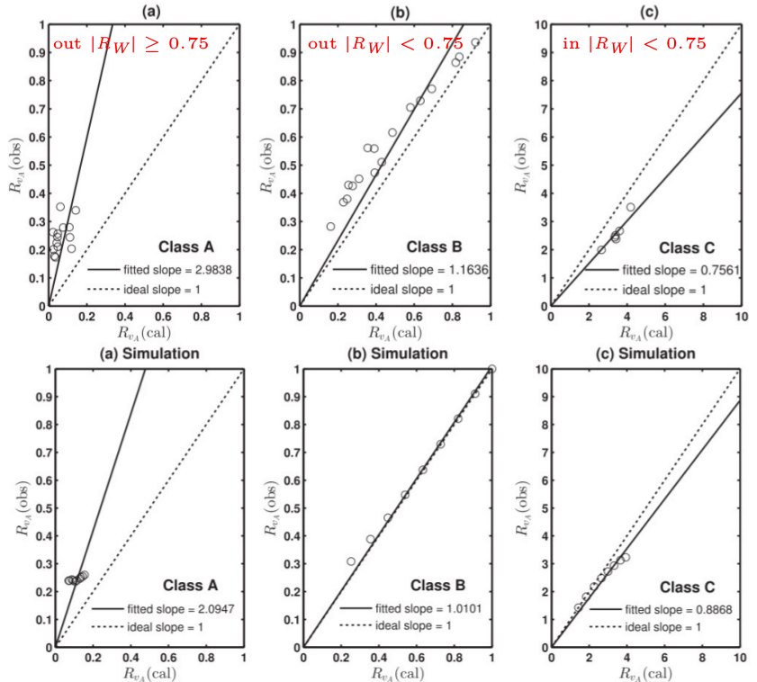 斜率同内传和外传阿尔文波振幅比之间的理论表达式。